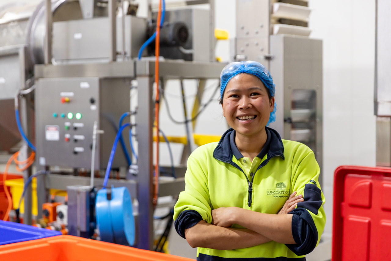 Suncoast Gold Macadamias are a medium sized employer in the Gympie area of South East Qld. We are large enough to employ up to 85+ people at the peak of our processing season and small enough to treat our employees as part of our macadamia family. SGM is a 100% grower owned co-operative macadamia processor, we purchase fresh macadamia nuts from our loyal suppliers in all Australian growing regions and produce high quality wholesale macadamia products for customers in Australia and around the world. You have no doubt eaten a Suncoast Gold Macadamia as we supply some of the worlds leading manufacturers and food retail brands who produce ice-cream’s, snacks and health food products with our macadamias.
