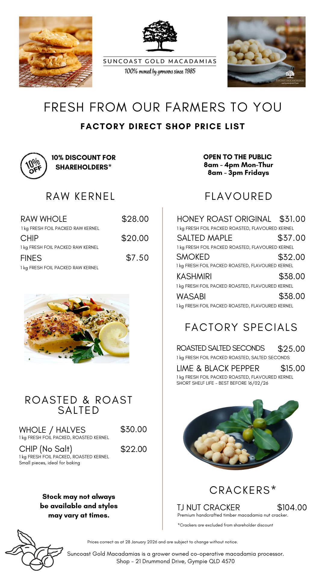 SEASONAL PRICING on all 1 kg packs available online or instore via our factory outlet shop in Gympie.