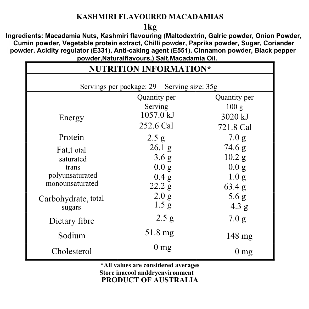 1kg Sale – $15.00 *SHORT SHELF LIFE – Best Before 14/11/2025
